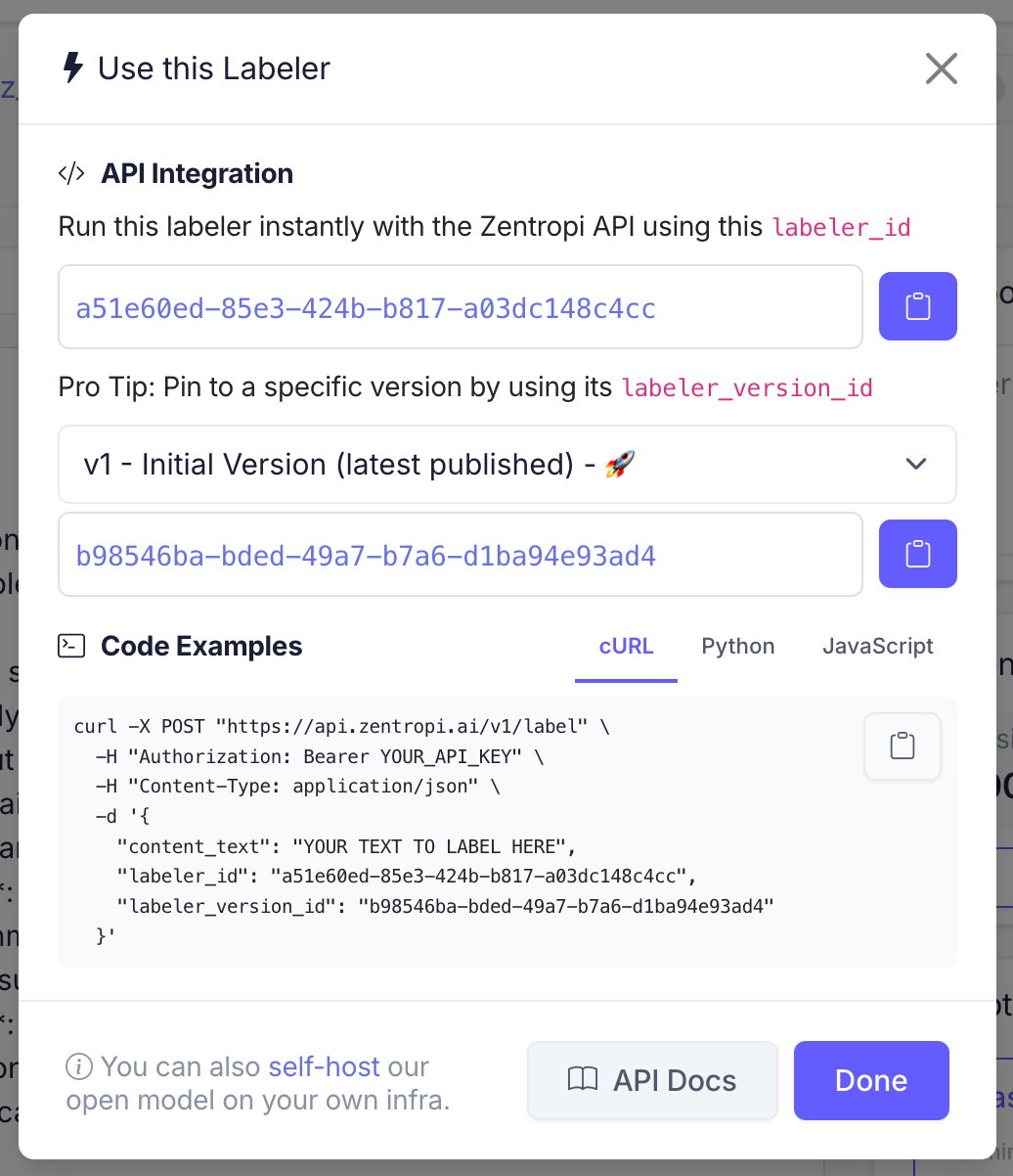 This feature is available for subscribers only, who can also download model weights for self-hosting— enabling image classification entirely within your own infrastructure if that's what your security posture requires.